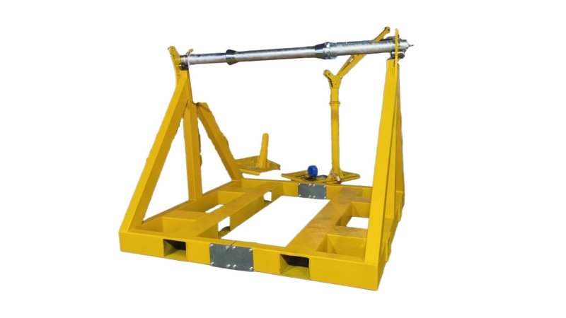 使用時2個主體架子可通過4塊連接板連接組合,使放線架更加穩(wěn)固。軸杠由每個架子上的各4個重載軸承支撐,并可方便軸杠靈活滾動。矩形管放線架承重線盤負荷5-30噸均可生產(chǎn)定制供貨。